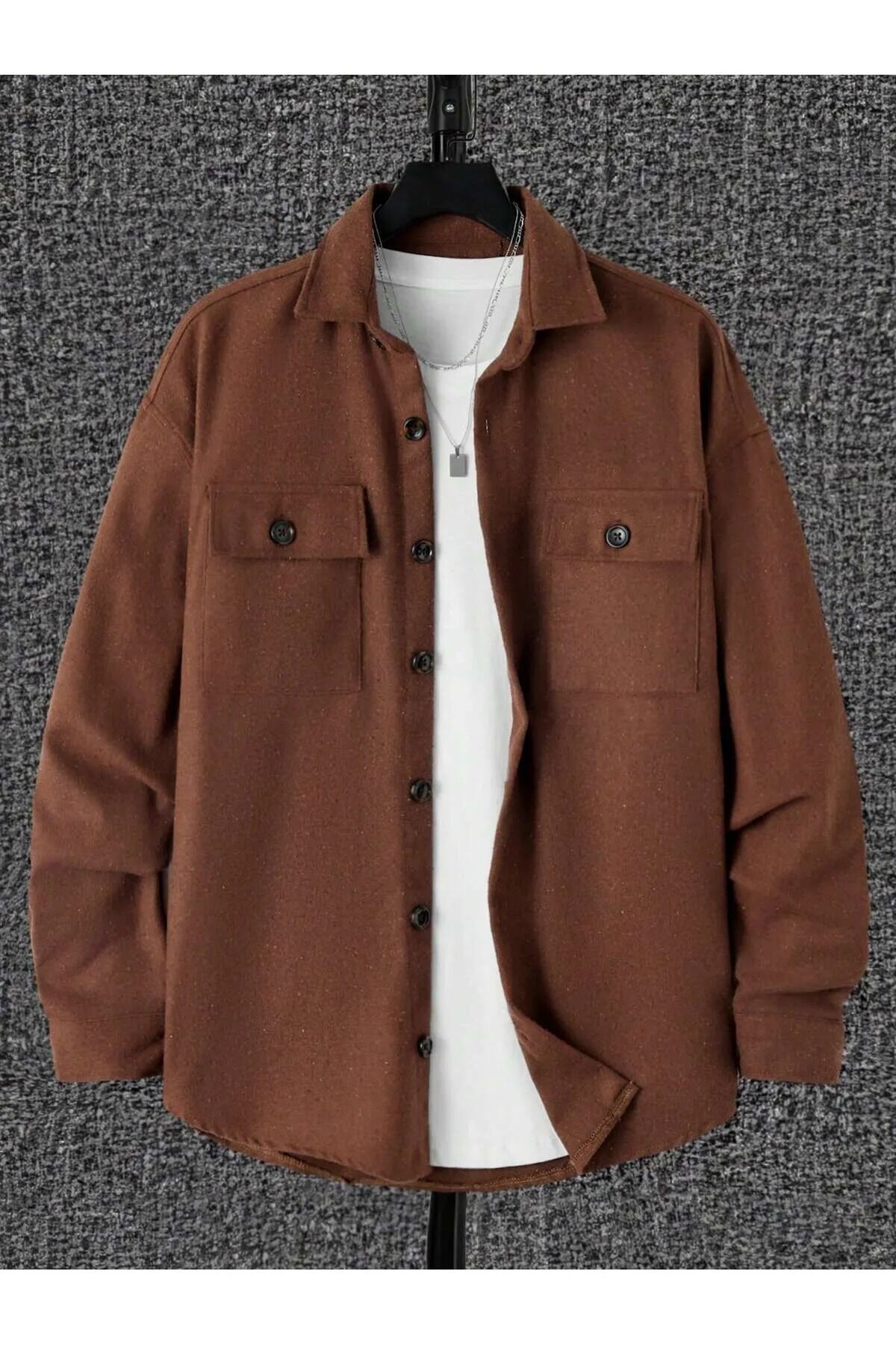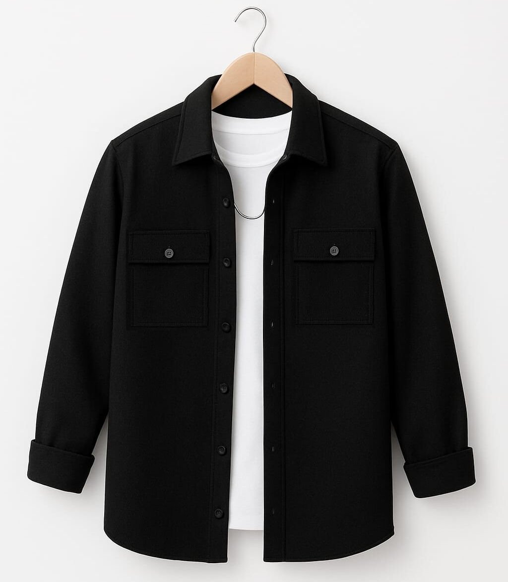 Kaşe dokusuyla zenginleştirilmiş düz kesim gömlek ceket, şıklığı ve rahatlığı bir arada sunar.