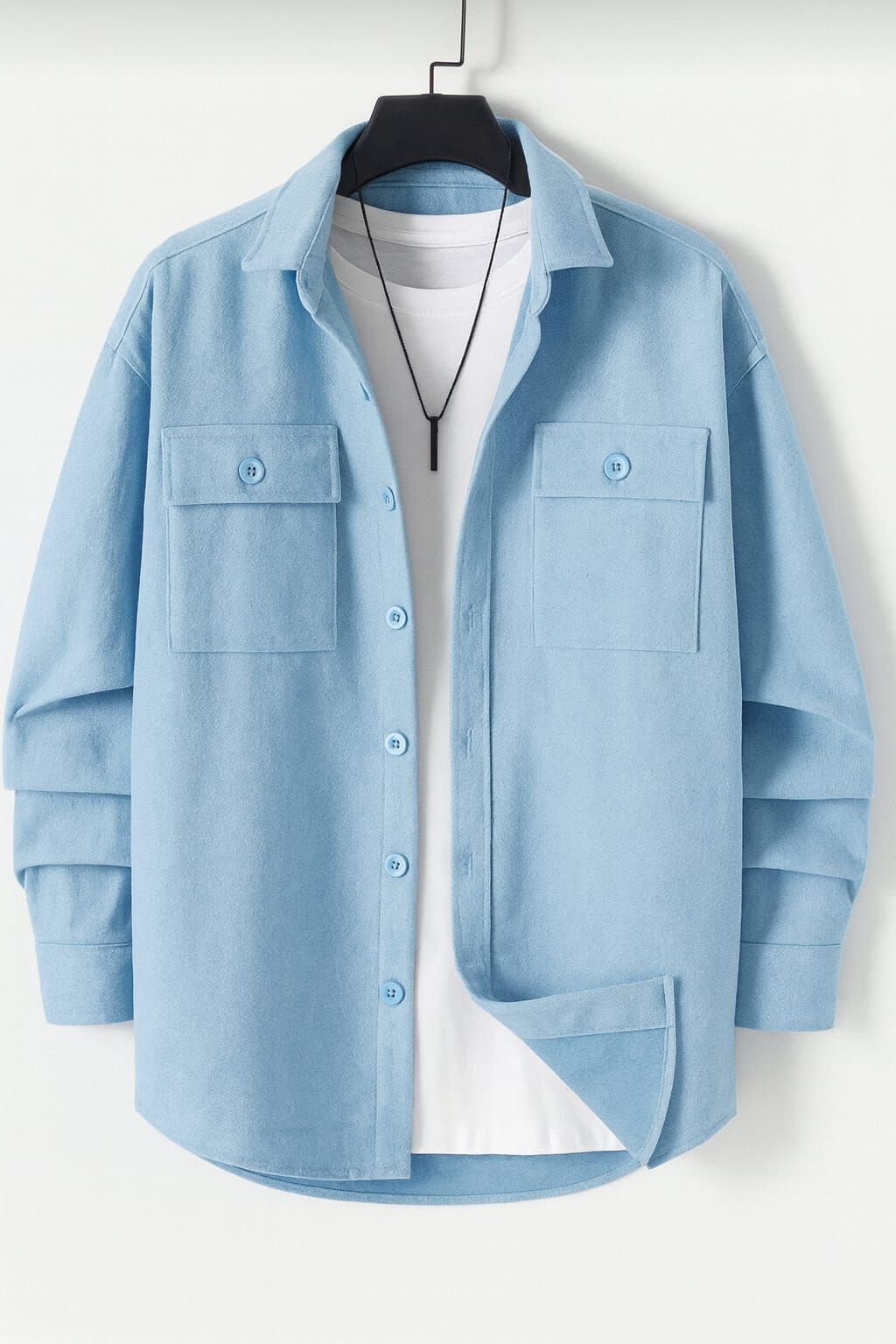Çift kapaklı cepleriyle fonksiyonellik kazanan bu gömlek ceket, günlük eşyalarınızı yanınızda taşımanız için pratik çözümler sunar.
